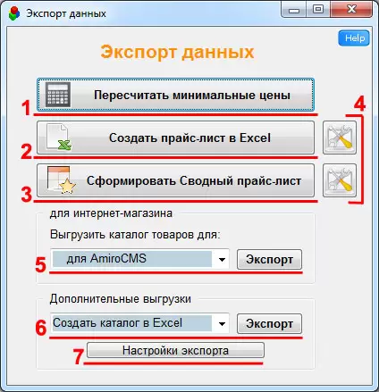Непосредственно для выгрузки сводного прайс-листа достаточно зайти в меню: Экспорт / Экспорт данных