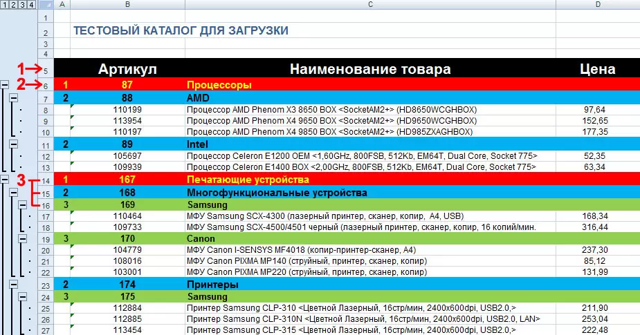 Если вы всё сделали правильно, то программа корректно загрузит категории, группы и товары в них.