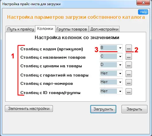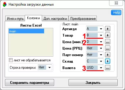 2. Настроить путь к файлу прайс-листа поставщика, а также колонки, из которых нужно будет в дальнейшем загружать данные (как на уроке 1).