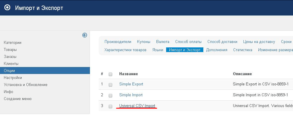 В этом разделе кроме стандартных Simple Export и Simple Import (которые не подходят для обновления цен), будут ещё и дополнительные модули, например Universal CSV Import, через которые и нужно обновлять цены/наличие на товары.