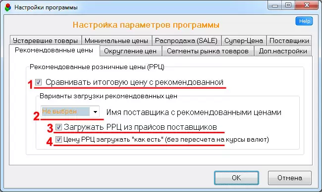 Программа позволяет учитывать Рекомендованные Розничные цены (РРЦ) при пересчете цен на товары.
